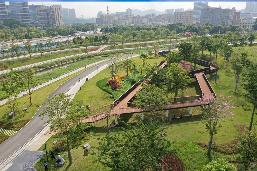 本項(xiàng)目長(zhǎng)14.6公里,景觀(guān)面積91.3公頃,是集設(shè)計(jì)、采購(gòu)、施工為一體的大型河道景觀(guān)綜合整治工程。主要景觀(guān)節(jié)點(diǎn)有茅洲之源、同觀(guān)濕地、茅洲畫(huà)卷、東坑橋、休閑運(yùn)動(dòng)場(chǎng)地、橋底體育運(yùn)動(dòng)公園等,是以高水平設(shè)計(jì)、高標(biāo)準(zhǔn)施工打造的光明區(qū)“生態(tài)脊梁”,是集水清、岸綠、景美于一體的茅洲河綠色生態(tài)長(zhǎng)廊,為周邊居民提供了優(yōu)質(zhì)的休閑漫步空間。