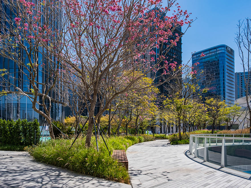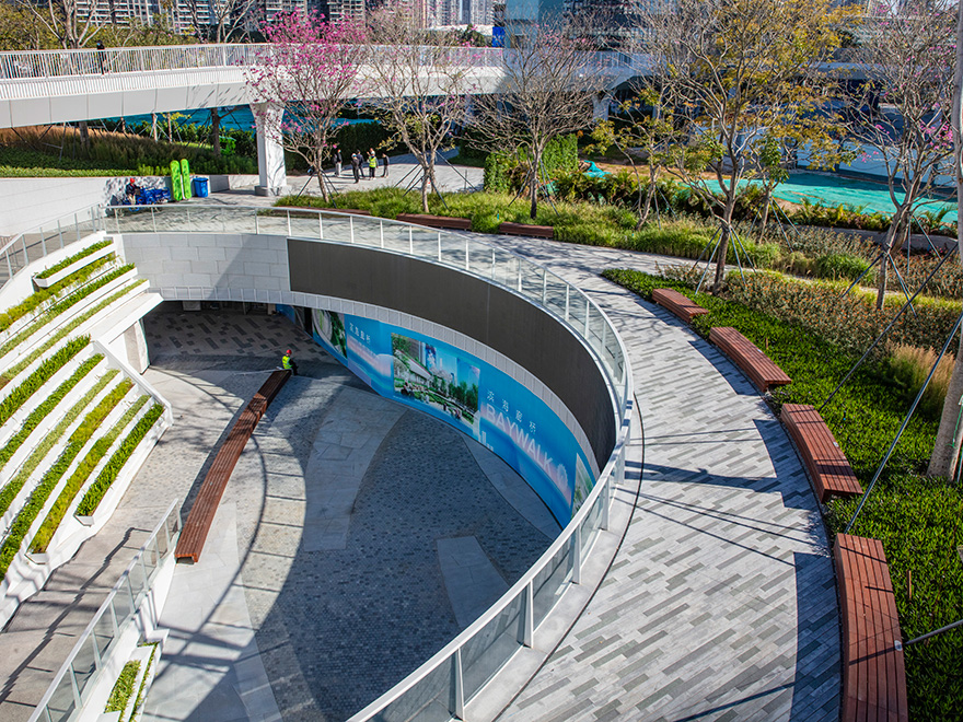 濱海廊橋總面積約13萬平方米,是深圳市寶安區(qū)政府打造的重要民生工程,也是深圳首個高線城市公園,在城市綠地上空建設(shè)二層連廊作為高線,通過連續(xù)的立體空間,將濱?;盍ρ由熘脸菂^(qū)內(nèi),打造灣區(qū)開放、共享的生態(tài)城市公園。是全國首個地下、地面、地上三層立體復(fù)合城市綠廊,也是深圳首個集交通、生態(tài)、觀景、服務(wù)、藝術(shù)、運動、社交等城市功能為一體的城市公共空間。
